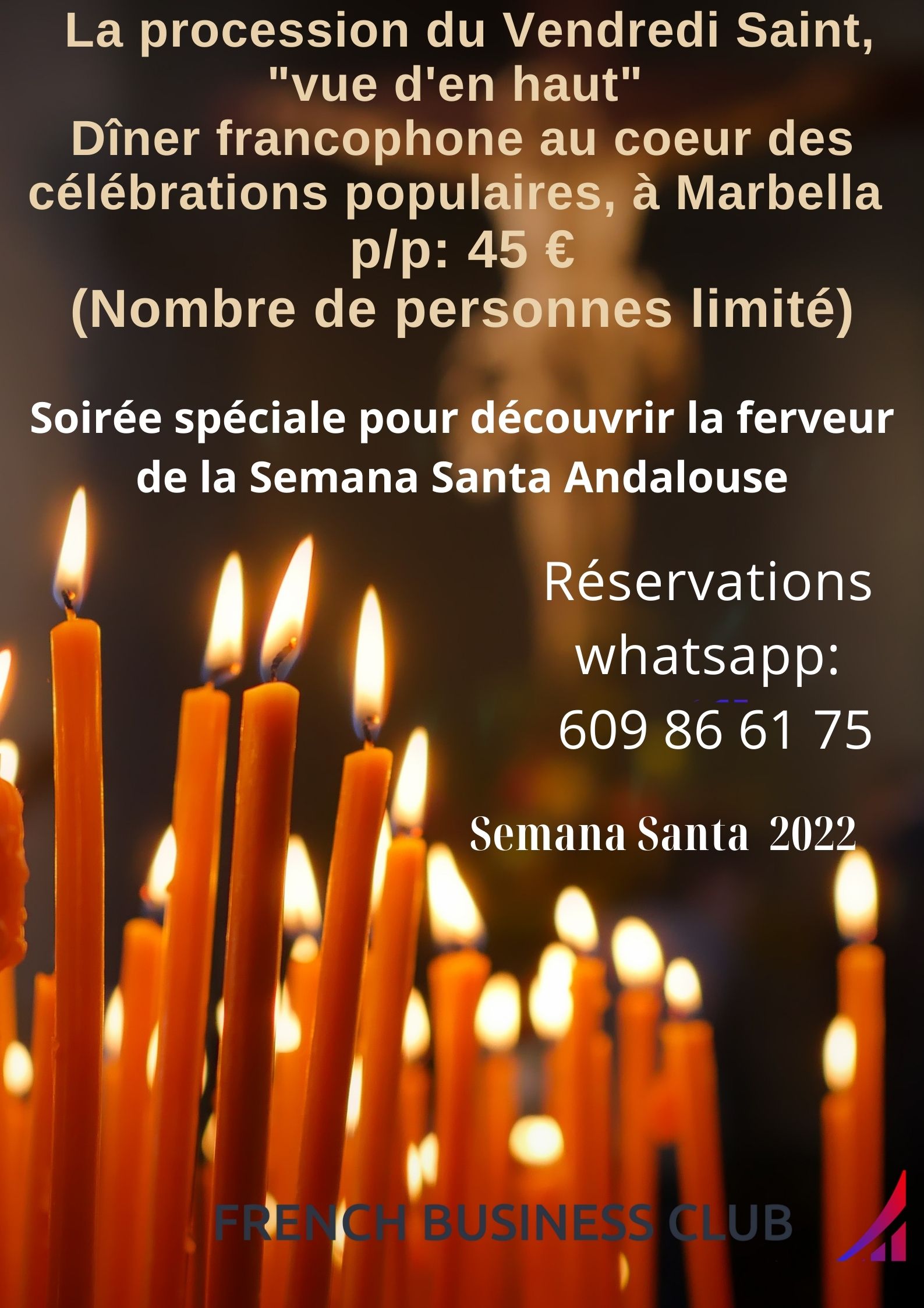 Carlos Brias, récipiendaire du prix 2022 de LA COPE (radio nationale) pour être reconnu comme meilleur saetero de l’année s’était déplacé spécialement pour les membres du French Business Club pour entonner deux émouvantes et vibrantes Saetas au passage des trônes.